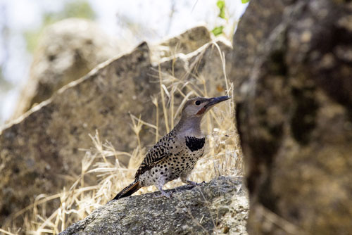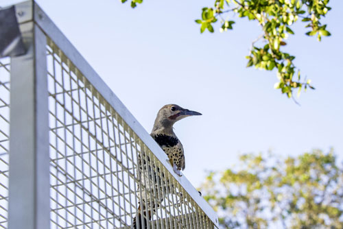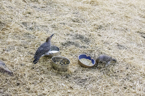 Four baby Northern Flickers (a type of woodpecker) were discovered in an Oakhurst cabin in late May and given to Fresno Wildlife Rehab on June 6 at about 10 days old. One baby endured a wing injury and had to be euthanized. The other three were raised in a home for about 4 weeks. As they got bigger and ready to fly, they were given a larger space to fly and lots of local oak wood pieces to practice pecking and foraging.
